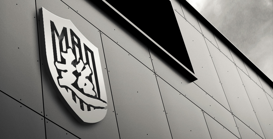 足球俱乐部徽标(足球场LOGO)的创意围绕核心“超MAN”展开,在图形外观上,结合了简约字母和传统书法这两个设计元素展开创作,以盾牌造型作为标识的外轮廓,来体现信赖感和行业感。简洁现代的英文“MAN”与挥洒张扬的毛笔字“超”两者结合,体现了体育文化的蓬勃向上。色彩上,选取了代表无限活力的红色和象征沉稳权威的黑色,两色结合,进一步强化了logo的体育竞技感。